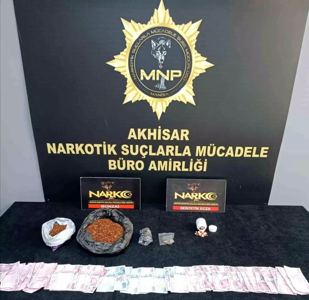 Manisa’nın Akhisar Cumhuriyet Başsavcılığı koordinesinde Akhisar Narkotik Suçlarla Mücadele Şube Müdürlüğü grupları tarafından uyuşturucu sattığı belirlenen şüphelilere operasyon düzenlendi. 2 başka adrese eş vakitli düzenlenen operasyonda G.D. (53), E.D. (32) ve G.Ç. (36) isimli şüpheliler gözaltına alındı. Adreslerde yapılan aramalarda; 670,54 gram bonzai, 42 adet sentetik ecza hapı, hatadan elde edildiği bedellendirilen 9 bin lira ele geçirildi.