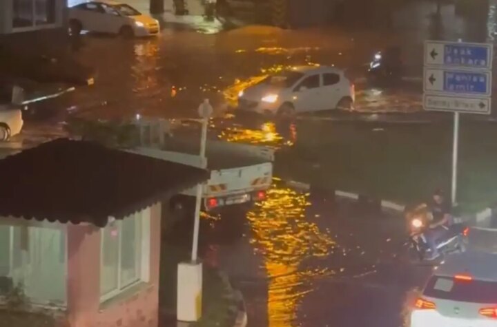 Manisa'nın Turgutlu ilçesinde tesirli olan sağanak yağış nedeniyle cadde ve sokaklar suyla doldu. Taban...